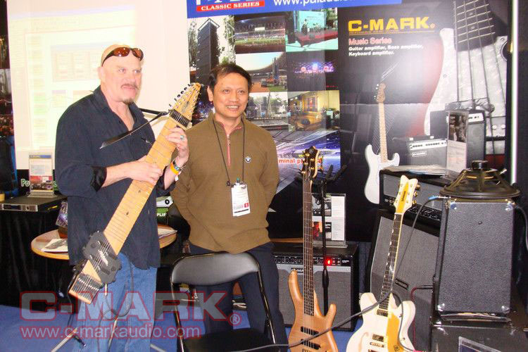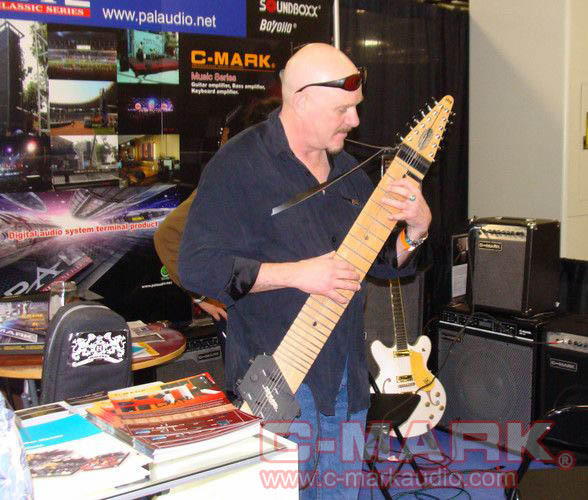 美国著名的吉他手Mr. Steve Adelso正在用我们的吉他音箱演奏(很多人围观)